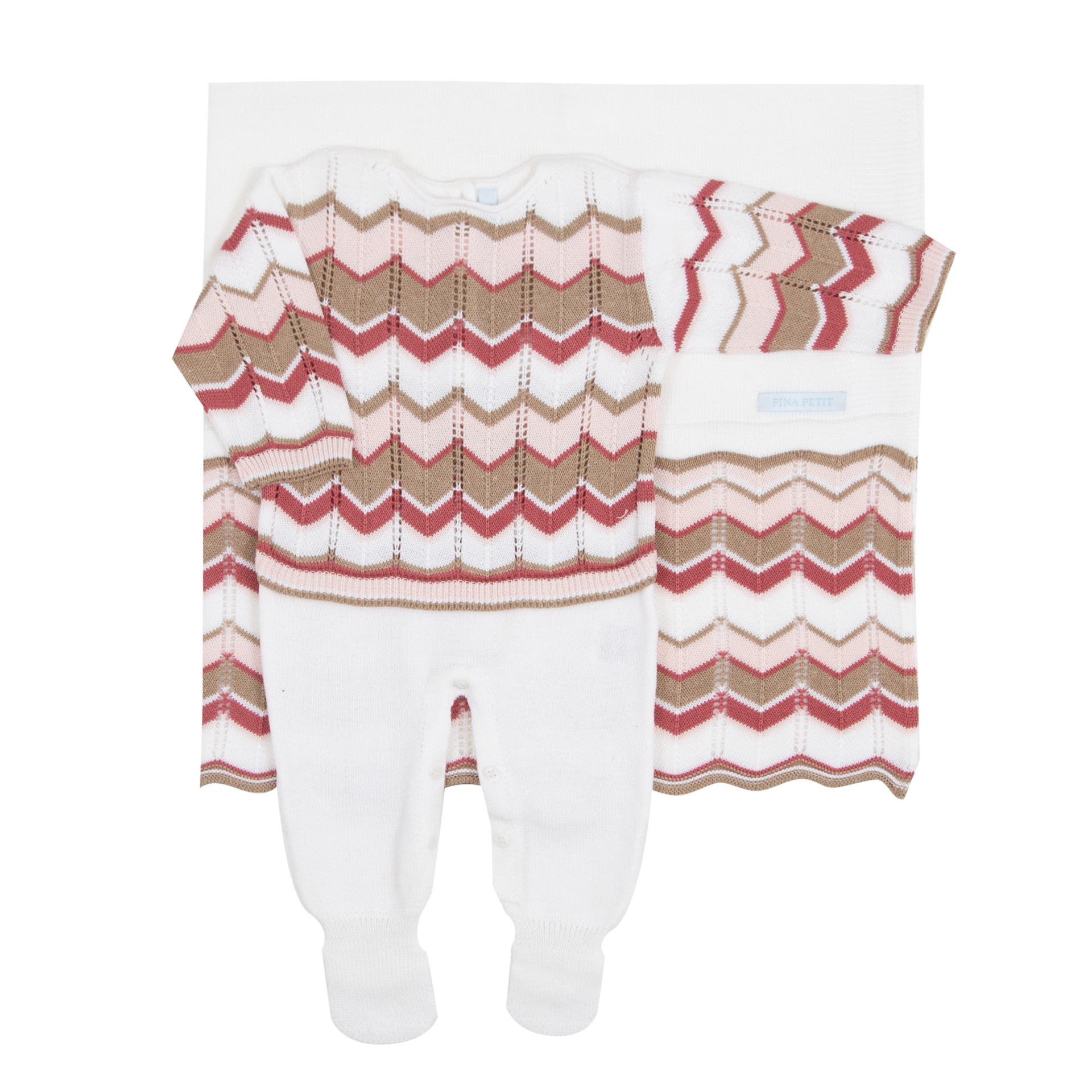 Macacão e manta em tricot 50% algodão 50% acrílico (seridó).